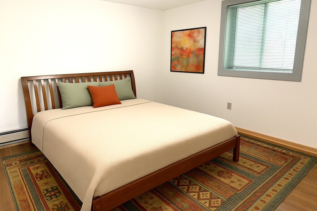 Are you done with noisy neighbors, walking through the cold and snow to your garage, and feeling like you are still in college? Then this wonderfully updated, bright, garden-level duplex unit is just what you need! This partially furnished duplex apartment features large windows that provide a lovely cross-breeze all summer and sunny days in winter, a newly renovated kitchen with a stainless steel sink and smooth-top electric range, a spacious bathroom with a glass-walled shower equipped with a rain shower head and a separate handheld sprayer, and easy-to-clean LVP flooring throughout. Your own in-unit washer/dryer (free), and a big in-unit storage closet are all included at no extra charge. We handle all the yard care/snow shoveling, and have a plowing contract with a highly reliable, local company that ensures you can always get out of the driveway and off to work on time. We clean the areas shared between the two units (the hallway and stairs). The apartment is furnished with the exact items shown in the photos: a sofa, a Roku TV and a TV table, a coffee table, a dining table and four chairs, a matching sideboard, rugs in LR, DR, BR, and kitchen; microwave, coffee maker, space heater, HEPA air cleaner, a dresser, a king-sized bed, a small desk with rolling desk chair, all window coverings, entryway shoe rack. (Note: artwork, towels, and bedding shown in photos are not included) Due to my allergies, we kindly request a chemical- and fragrance-free environment (no air fresheners, scented candles, intense perfumes, or strong hair chemicals). We'll supply fragrance-free laundry soap, dryer balls, and cleaning supplies for your first three months to help cover any costs associated with making that transition. We (upstairs) are quiet adults, and the layout of the two units means there is minimal noise transmission across units. The apartment requires a one-year lease and does not permit sub-leasing or adding new renters without prior approval. The $40 application fee (applicable toward your first month's rent) covers a background and credit check, including your income-to-rent ratio. This is an ideal space for someone seeking a calm and quiet environment. The apartment will be move-in ready by October 25. If this sounds like your kind of place, we'd love to hear from you.