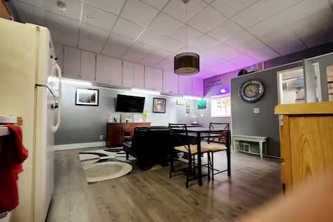 A contemporary modern apt. fully furnished for $1800 per month, or $1600 per month for unfurnished.A $200 per/month HOA cover all utilities, (to include water, sewer, trash, gas, and even WiFi.) This apt. boasts 12+ foot high ceilings, 2 flat screen smart TVs (one in the living room, and one in the bedroom.) A glass pedestal sink in the bathroom. A Full kitchen to include, ( coffee maker, oven, full fridge, Microwave, dishwasher.) You will immediately feel at home with in the zenish vibe that is created. You will have peaceful nights upon the high quality pillow top bed. Off street parking. Access to a shared backyard complete with fire pit a hammock, and 2 hammock chairs. Access to free secured washer and dryer.