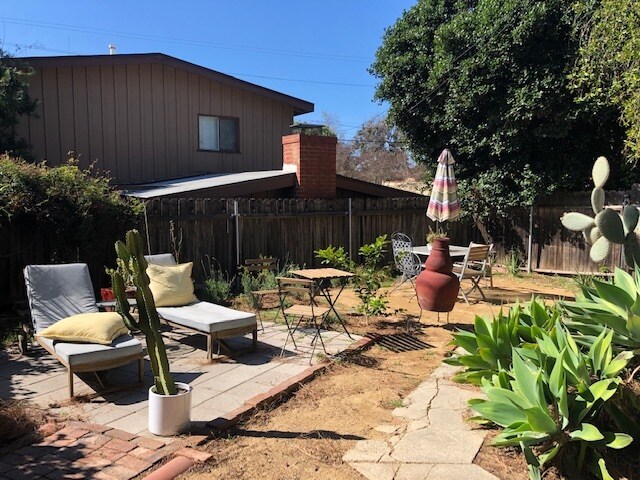 Classic Moorish Style Spanish Duplex (lower) with two bedrooms and two baths. Enter through a rotunda and you'll immediately notice the beamed ceilings in living room with the most unusual decorative fireplace mantle. Large primary suite with hewn wood beams with room for a king sized bed and private en suite bath. Spacious living and formal dining room. Bedrooms are on either side of home, perfect for a home office. Great storage space with washer/dryer included (shared). Hardwood floors throughout. Lovely landscaped shared back yard off the kitchen. Single car garage with driveway. Great Atwater location with its Sundays Farmers Market, Cafes, Shops and Restaurants. Photos are from previous tenant, unit is unfurnished.