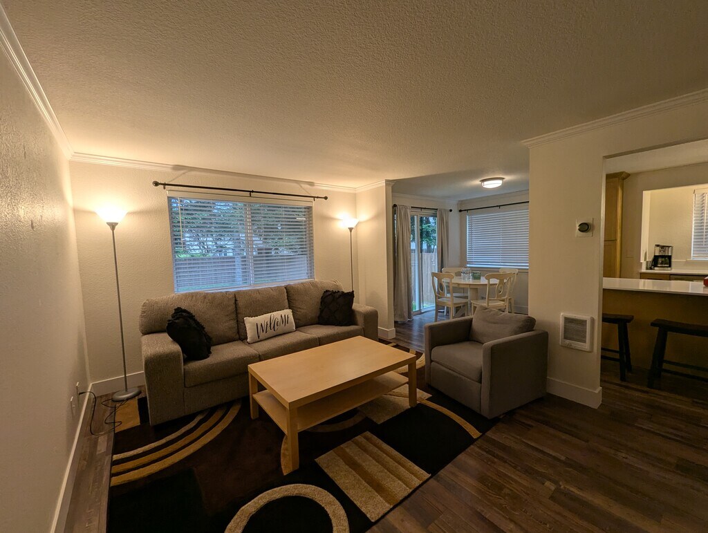 Welcome to this spacious and modern 3-bedroom, 2.5-bath duplex located in a quiet, family-friendly neighborhood in Puyallup. The home features a fully fenced backyard perfect for pets, an updated kitchen, and comfortable sleeping arrangements including a King bed, Queen/Full bed, and a Futon sofa bed. Enjoy convenient amenities like in-unit laundry, a Smart TV, and parking for up to three vehicles including a garage with EV charging. With plenty of space to relax and easy access to local attractions and transit, its an ideal stay for families, professionals, or small groups.