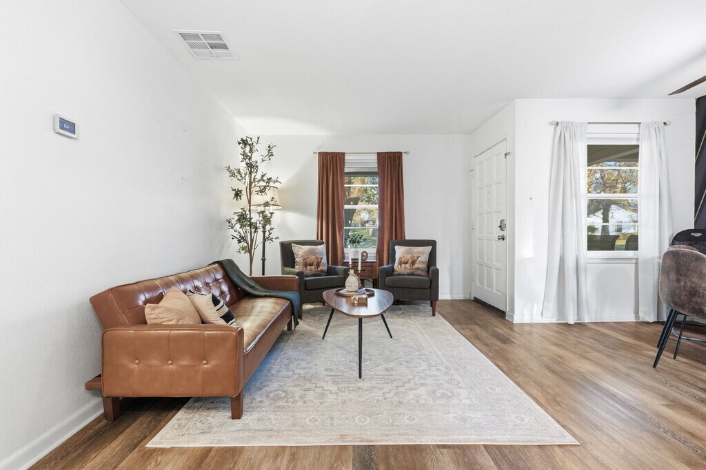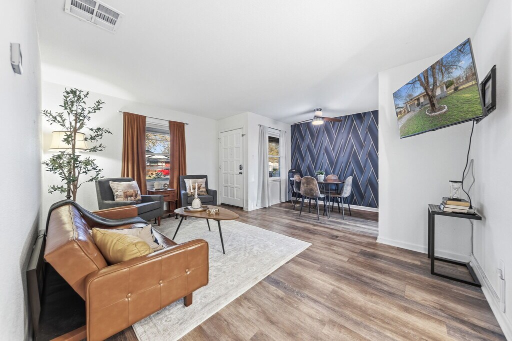 **Fully Furnished, All Bills Paid Corporate Rental! Pets Welcomed** This amazing little home with a big yard and a bigger heart will be the perfect place for your 30 day plus stay. It has everything a corporate traveler, travel nurse or small family would need to make for an amazingly pleasant stay! There are 3 cozy bedrooms, a super comfy living area, a lovely dining area and a quaint little kitchen with all the amenities you'll need. Read a nice book, connect on an important Zoom call with blazing fast internet or study for your big test at the convenient study nook! There's also an in-unit washer/dryer available for your stay. Step outside to the backyard and enjoy amazingly comfortable patio furniture, a great BBQ pit and a big yard for the doggies and kiddos to run around in. It's the perfect place to chill for the summer! You'll fall in love with this little home with the big heart, as much as we have. The thoughtful designs and touches throughout will really make you feel at home. And you will be! Welcome! There's a one time cleaning fee of $150. Deposit is refundable. No smoking / vaping in interiors, take care of the furniture. Pet Rent is 100/mo. Utilities caps apply