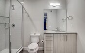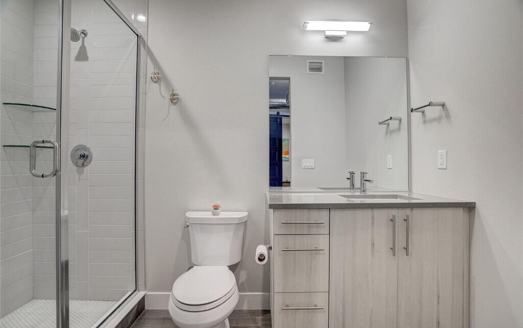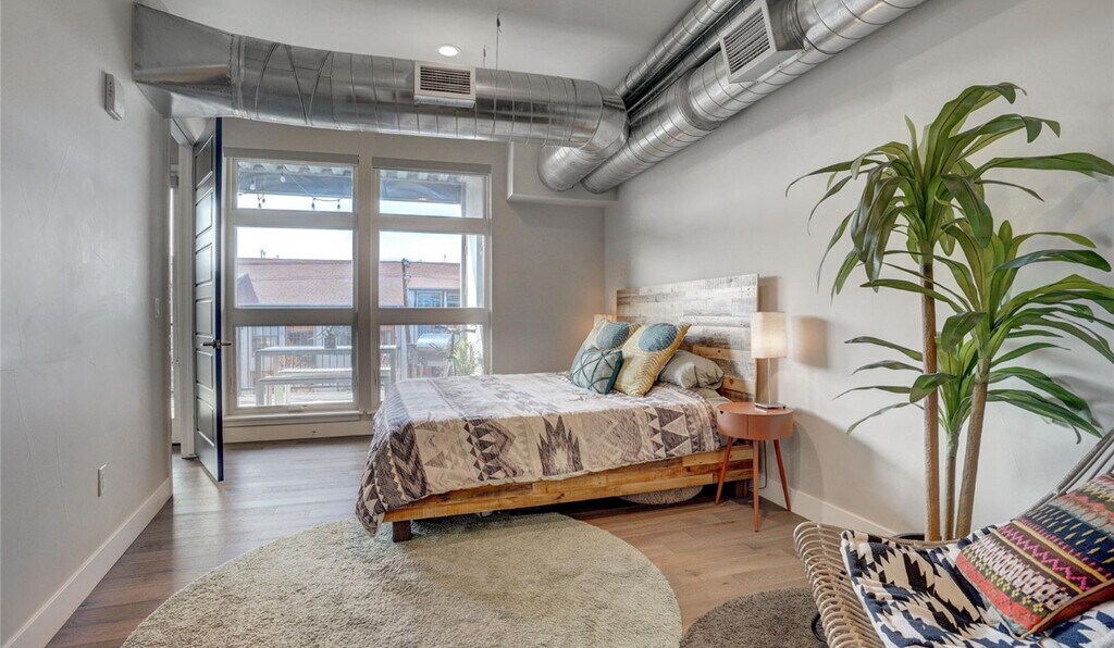 Step into this exceptional apartment located in the heart of Denver’s vibrant RiNo neighborhood—just steps from renowned restaurants, breweries, coffee shops, and art galleries. Surrounded by stunning murals and artistic energy, this home offers the perfect balance of style, comfort, and location. Inside, you’ll be welcomed by a bright, open layout with soaring ceilings and eco-friendly wide-plank flooring. The spacious living and dining areas flow seamlessly, highlighted by an LED electric fireplace and large windows that flood the space with natural light. The sleek, modern kitchen features stainless steel appliances, generous counter space, and contemporary cabinetry—perfect for both everyday meals and entertaining. The primary suite includes a spacious bedroom and luxurious en-suite bathroom with double vanities, a walk-in shower, and soaking tub. A second bedroom, ideal for guests or a home office, is paired with its own beautifully appointed bathroom. Enjoy outdoor living on the private balcony, featuring a custom mural by a local artist and room to relax or dine al fresco. This energy-efficient apartment includes Low-E windows, high-efficiency HVAC, WaterSense plumbing, and advanced insulation to keep utility costs down. Residents also have access to a communal rooftop patio offering incredible mountain views and unforgettable Colorado sunsets. Live just minutes from downtown, bike trails, and all the culture and charm that RiNo has to offer.