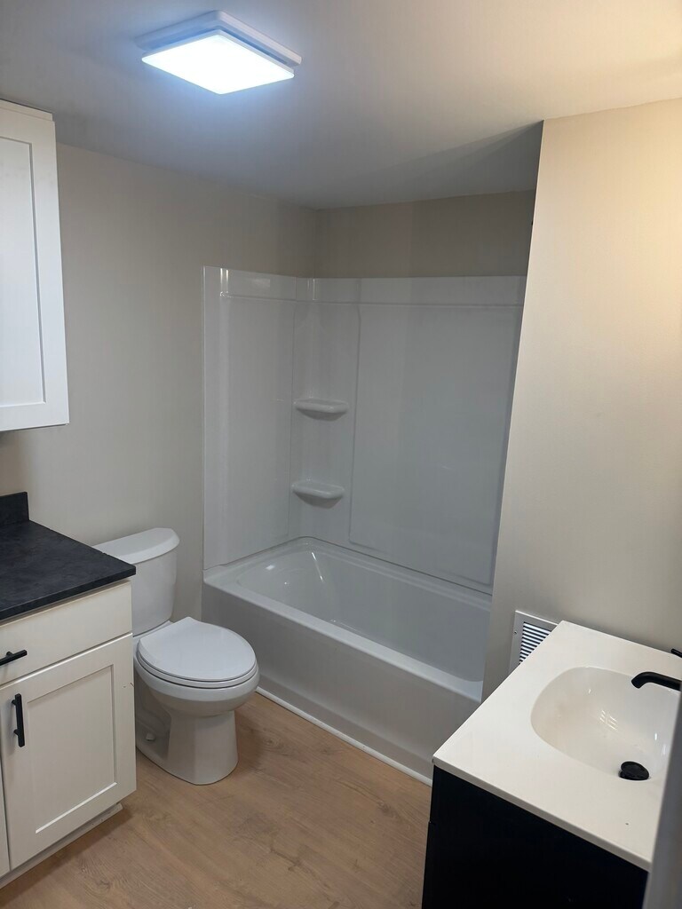 Great first floor 1 bedroom 1 bath apartment. All newly refinished hardwood floors and all new interior paint. Updated kitchen with dark stained butcher block counters new backsplash and stainless appliances. Brand new bathroom. Bathroom also features laundry hookup. Available March 1, 2026. House also has new furnace electrical and hot water heater. Rent is $1175 plus utilities. Tenants pay for propane (for heat and hot water) electric and 1/2 water bill. Owner provides garbage service, snow removal and mowing