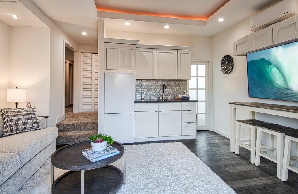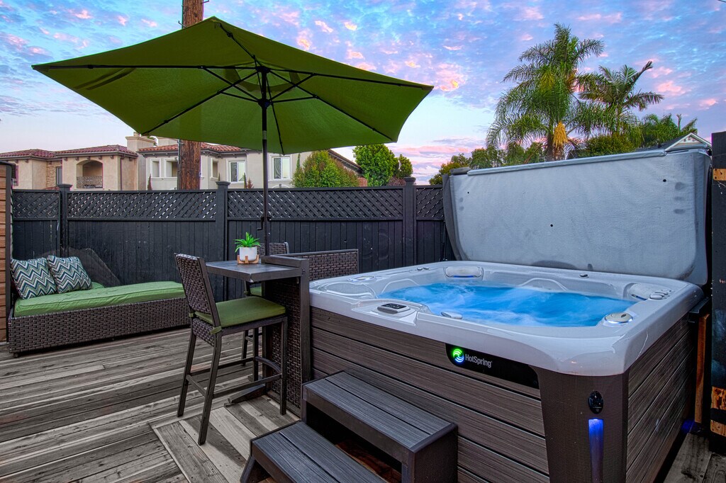 Charming turnkey suite style 1 bedroom ADU. 2 blocks from Hoag and 5 minute bike ride to the beach. Fully Furnished and equipped with a private outdoor oasis including a saltwater spa, infrared light sauna and al fresco dining. In suite washer and dryer, parking AC/heating High Speed Wi-Fi and all utilities included. All furnishing are brand new including guest sleeper sofa. Security code gate to private patio and unit. ( Please Call to make an appointment for viewing ) Thank You