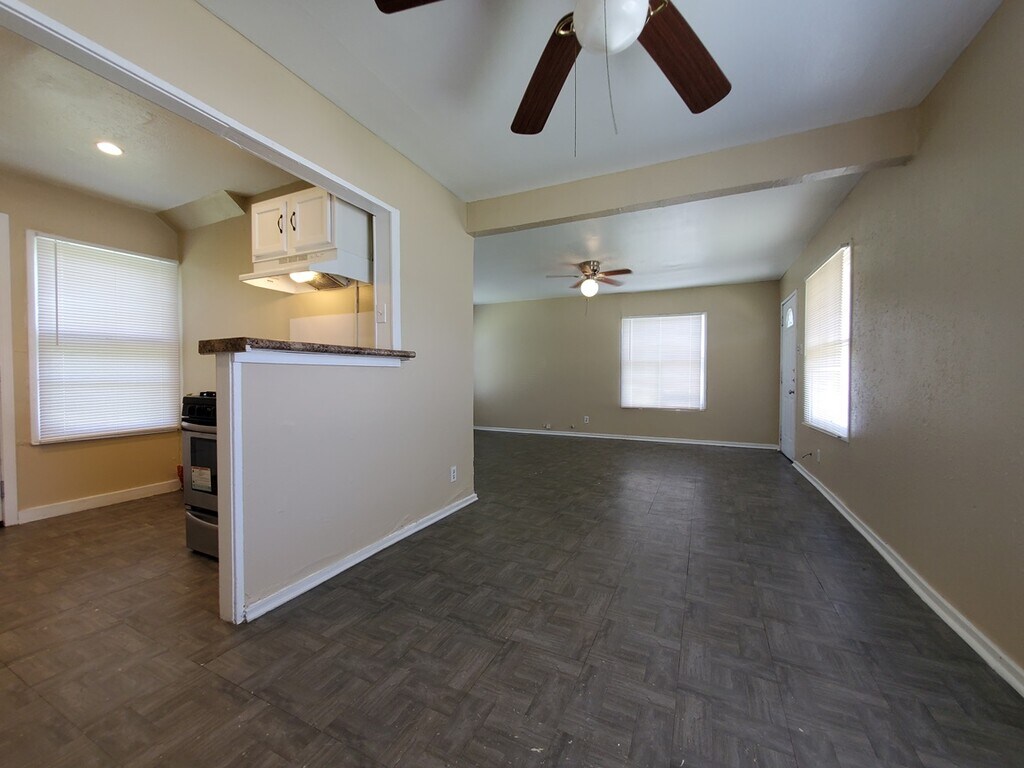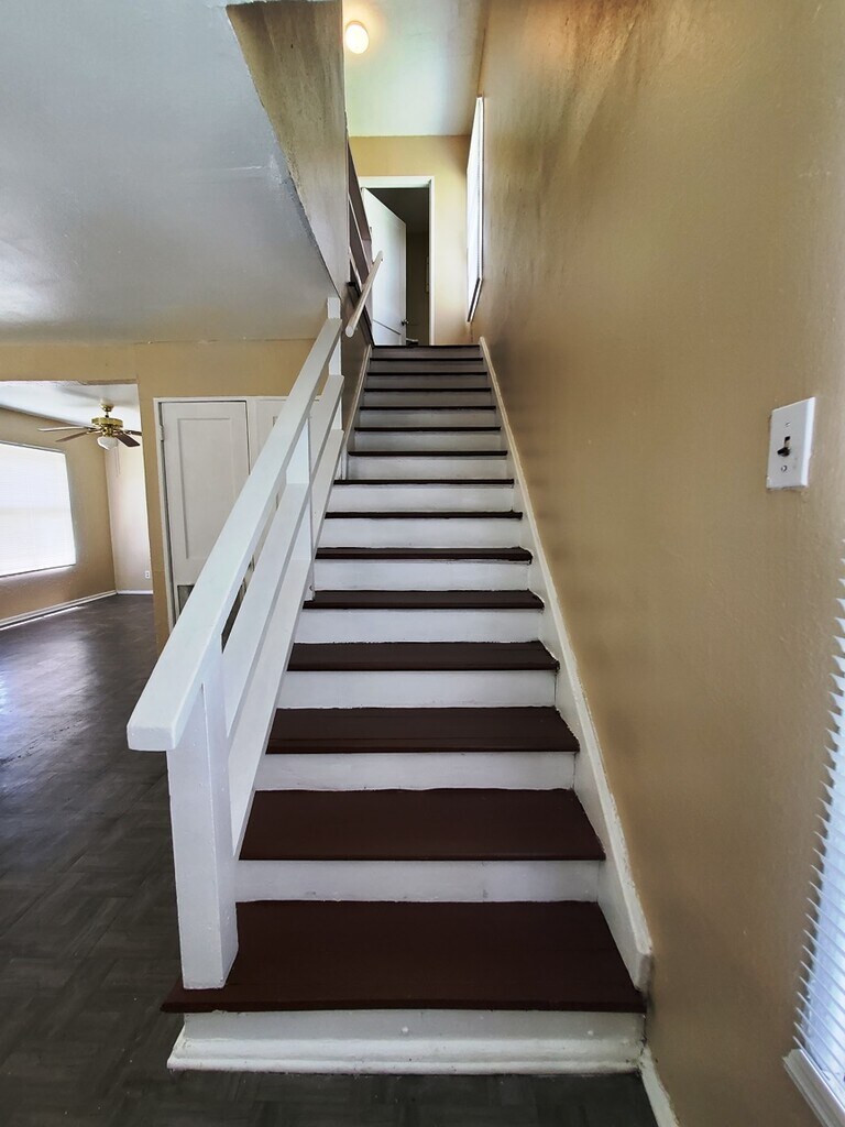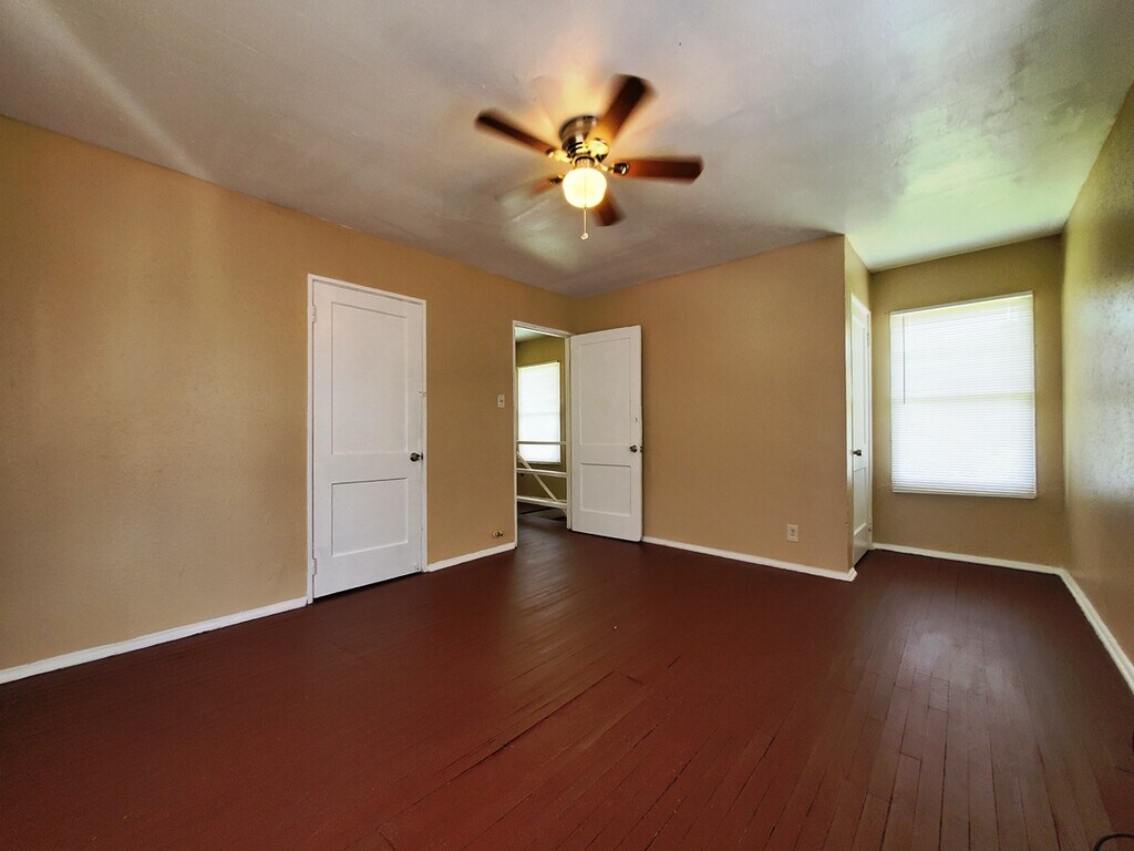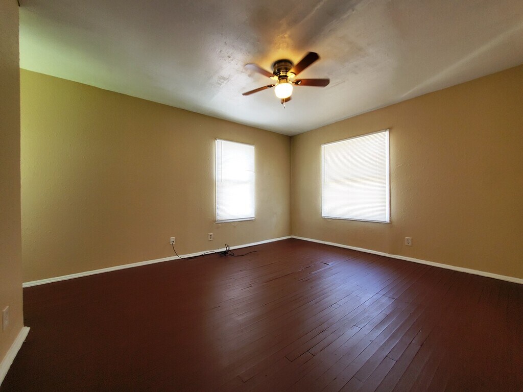 2/1 duplex. Easy access to Hwy 59, grocery, dining, shopping, and schools. Hardwood floors upstairs. Off-street parking. 12-month lease minimum. Tenant pays the electricity and gas. Tenant pays electricity, gas and trash utility; water on a ratio-allocation basis. Public laundromat nearby. Ceiling fans in bedrooms and living area. Gas oven/stove and 40-gallon gas water heater. On the public bus line. Community Park on the next block. Rent plus deposit. Online Application Fee of $35 for background check, income verification, and rental history. 12-month lease minimum.
