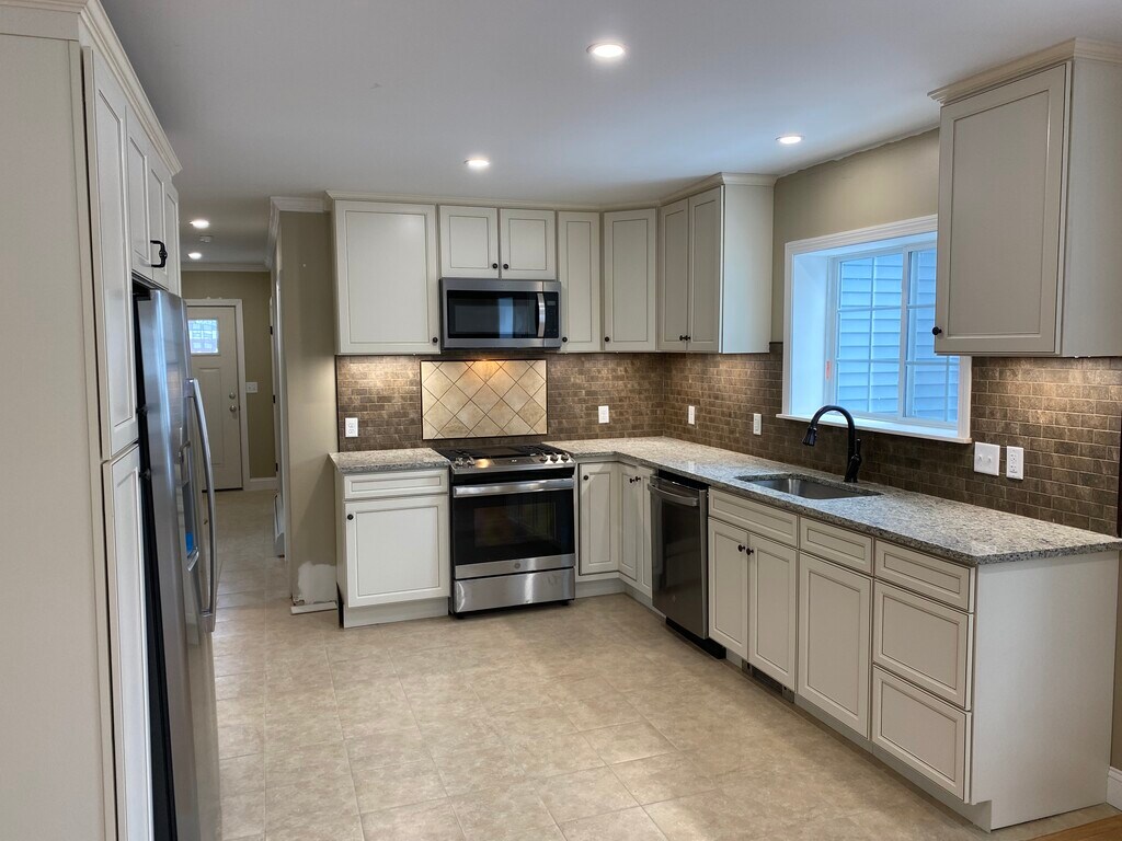 Completely renovated-Two units-one upstairs and one downstairs. Both Three bedroom. Both are fully furnished units for travelers or someone needing temporary housing only. Upstairs has a master 1/2 bath as well. Actually a brand new building. (only kept the outside wall studs!) Upscale design, granite counters, recessed lighting, natural gas, washer and dryer in each unit. All brand new appliances, furnace and electric. Deck and back yard. Basement storage possible. Park in driveway. Close to Auburn exit for Portland commuters. Parking in driveway (shared with other unit but room for 3-4 cars) plus plenty of safe street parking. 3-12 months leases available. Traveling Nurses and medical personnel welcome. NO SMOKING. Pets on approval.