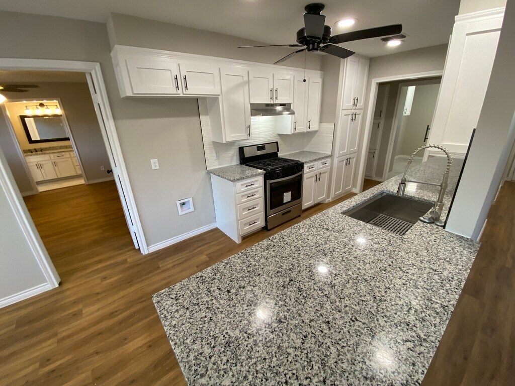 MOVE IN READY!!! COMPLETELY REMODELED!!! 3/2/2 Located in South Lubbock. Just over 1500 sq. ft. with a two car garage. Private back yard with a covered porch and deck. Separated wash room with W/D hookups, dishwasher and stove included (must provide your own refrigerator). One year lease minimum and prefer no pets. Deposit is $1500