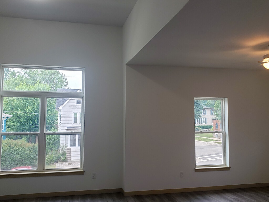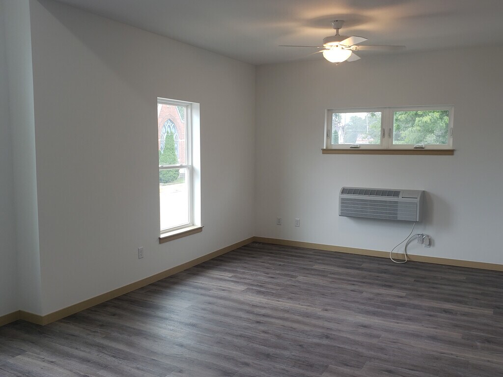 Newer upper apartment unit, 1-bedroom, 1 bath apartment with den/office located on West Main Street in Stoughton. Approximately 1100 square feet. Large living room with high ceilings, 1 bedroom, and a den/office. Laminate vinyl flooring. Newer appliances include dishwasher and microwave. Additional features include laundry center, large windows, wall A/C, and baseboard heat. 1-car garage + parking lot, bike rack, picnic table, and a dumpster. The Stoughton Main Street Historical district features 150-year-old buildings, unique shops, The Stoughton Opera House, City Hall, and The Badger Theater. Lease Terms: One year lease. Security Deposit is equal to one month’s rent and is due at lease signing. Tenants pay for all utilities. Management takes care of lawn maintenance and snow removal. Cats only. +$30/month per cat. Renter's Insurance required.