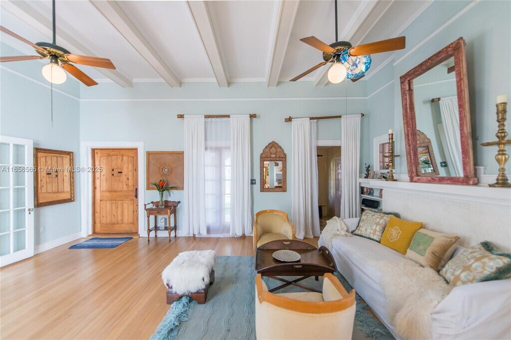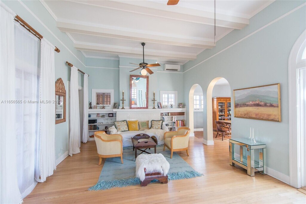 Charming Spanish/European-inspired home situated in coveted North Coconut Grove. Lush tropical landscape with exotic palms, serene ponds & a refreshing small plunge pool/jacuzzi. The backyard is an entertainer’s paradise featuring: tiki hut/palapa & Argentinian Grill/Pizza Oven. The Main house is a light-filled 2 bed/ 1 bath + Den, designed with an open single story layout and an internal courtyard that brings natural light. A separate 1 bed/1 bath guest casita with its own separate entrance and privacy has a kitchenette and its own washer and dryer makes it ideal for a private office, in-laws/nanny/teens quarters. This home embodies an upscale yet relaxed lifestyle to walk, bike or take a golf cart to the nearby marinas, parks, restaurants and top schools. Available now.