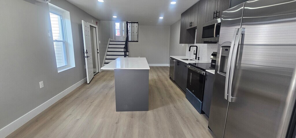 Newly renovated (2025) luxury rental apartment with a private large deck! Hardwood flooring and soaring high ceilings throughout. Oversized windows flood the interior with great natural light. A spacious interior- open layout living area and kitchen with 2 private bedrooms and 2 full baths. A fully equipped kitchen with as-new, stainless-steel appliances, Quartz stone counters, and custom-built cabinetry. Same-size bedrooms, each with its own full bathroom, and good-sized closets. Well-designed bathrooms, fully tiled, with glass-door shower stalls and lovely bath fixtures. LED light fixtures. As-new central air system. Brand-new washer and dryer machines. Queen Village, Philadelphia- Enjoy living only minutes' walk from many eclectic shops, countless eateries and restaurants, Penn's Landing, and the Delaware waterfront. A quick walk to Market and Chestnut Streets' financial districts. Jefferson, Pennsylvania, Temple, Wills Eye, CHOP, HUP, UPenn, and other major medical facilities are all within a short walk or ride. Easily commute in & out of town (I-95, I-76, Ben Franklin Bridge, the airport) and enjoy the area's best attractions! Lease Terms Showings by appointment only. Pet cats and dogs are allowed with some restrictions and with pet fees. 12 month lease term is the minimum. No subletting. No corp leasing. Nearby parking options- Permit zone street parking or public garages and lots offering monthly rates. Although deemed accurate, the information listed in this ad is subject to change at any time and without prior notice. Please excuse any mistypes and errors.