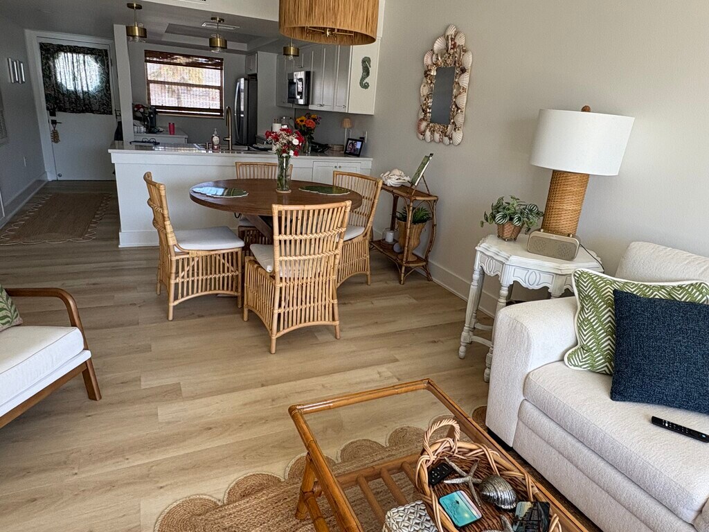 Newly fully renovated condo in New Smyrna Beach. Conveniently located to the beach, Flagler Avenue, Canal Street, restaurants and many other amenities. Beautiful view of the expansive gardens and heated pool. Partially water views. Large clubhouse with pool table, ping pong table, guest area with full kitchen and guest area to watch your favorite programs on a large screen TV. Large dock for enjoying the waterway or fishing.