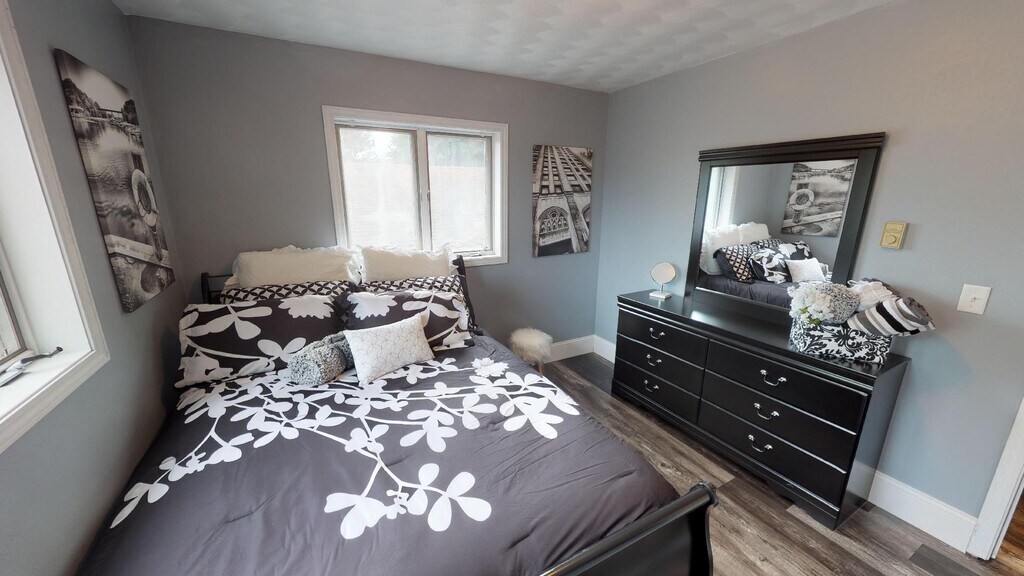 We have multiple furnished housing options in our Oshkosh Chalets, two bath premium family suite (pictured here) with two car attached garage and sunroom to single bedroom executive unit. Pricing varies depending on unit selected, length of stay, and number of individuals and pets in your booking. Bill consolidation and all amenities including fully stocked kitchen is included. This unit is large enough to house a big family and offers private spaces for parties with multiple adults or growing teens.