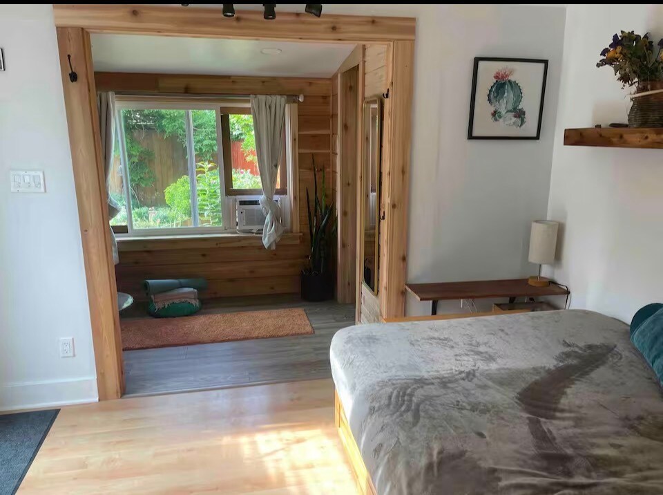 Cozy Furnished Studio in SE Portland | Peaceful + Private -Sauna and Outdoor Hot/Cold Bonus Tub| $1,375 All-In 12-Month Lease | Available March 1 | 1 Person | No Pets / No Smoking Move-in-ready furnished studio in one of SE Portland’s most loved pockets—32nd between Hawthorne & Division. This is a sweet, self-contained space for someone who values quiet, beauty, and simplicity. Ideal for a writer, remote worker, or independent renter looking for a calm home base in a great neighborhood. The Space • Fully furnished (bed, small dining table, TV) • Private bathroom with bidet • In-unit washer/dryer combo • Compact kitchenette (microwave + hot plate) • Private patio with soaking tub and privacy curtain • Private entrance Outdoor Amenities • Shared backyard & sauna • Used occasionally by owner; generally quiet and low-traffic Details • Rent: $1,375/month (includes all utilities) • Lease: 12 months • Occupancy: 1 person • No pets / no smoking • Quiet, residential setting This studio suits someone who wants a peaceful, charming place to land—more sanctuary than party house. Previous tenants have treated it as a true home.
