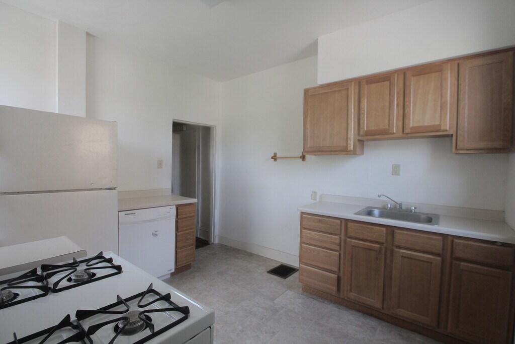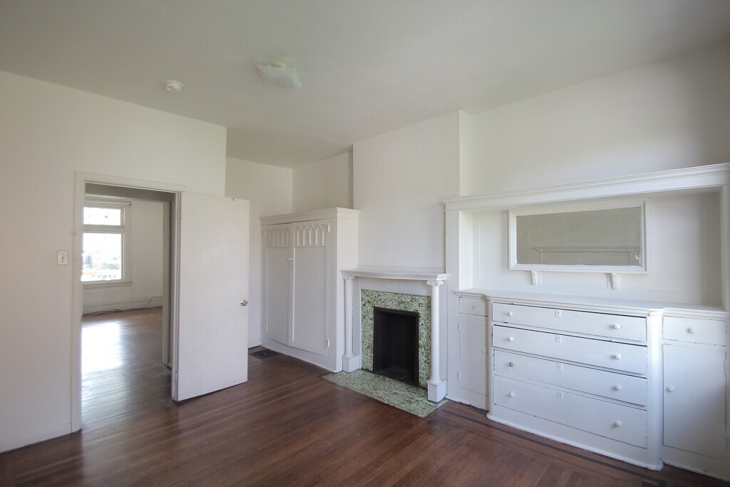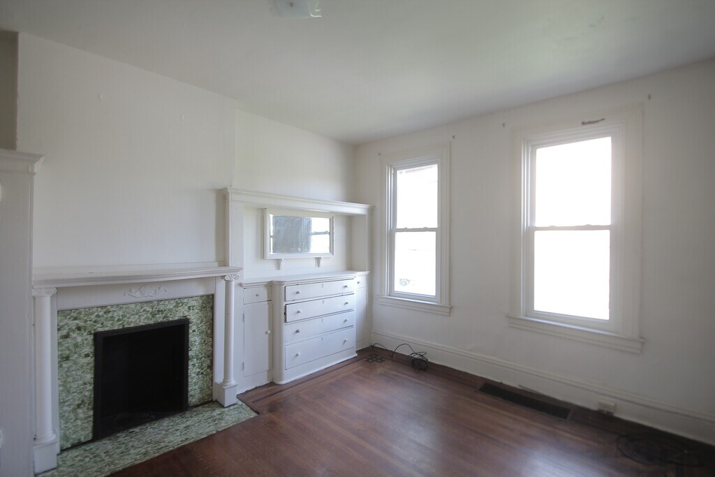 Private apartment in classic brick house. Inlaid design hardwood floors. Decorative mantles adorn the two antique fireplaces. Built-in cabinetry. A large front porch runs along the entire face of the house and opens up into the front foyer. The back porch opens up from the kitchen to a shared backyard. This house has old world elegance. The kitchen has recently updated wood cabinets, sink and countertop, and a dishwasher! The stove is gas. The bathroom has been restored with beautiful ceramic tile. On site laundry All of our apartments are non-smoking.