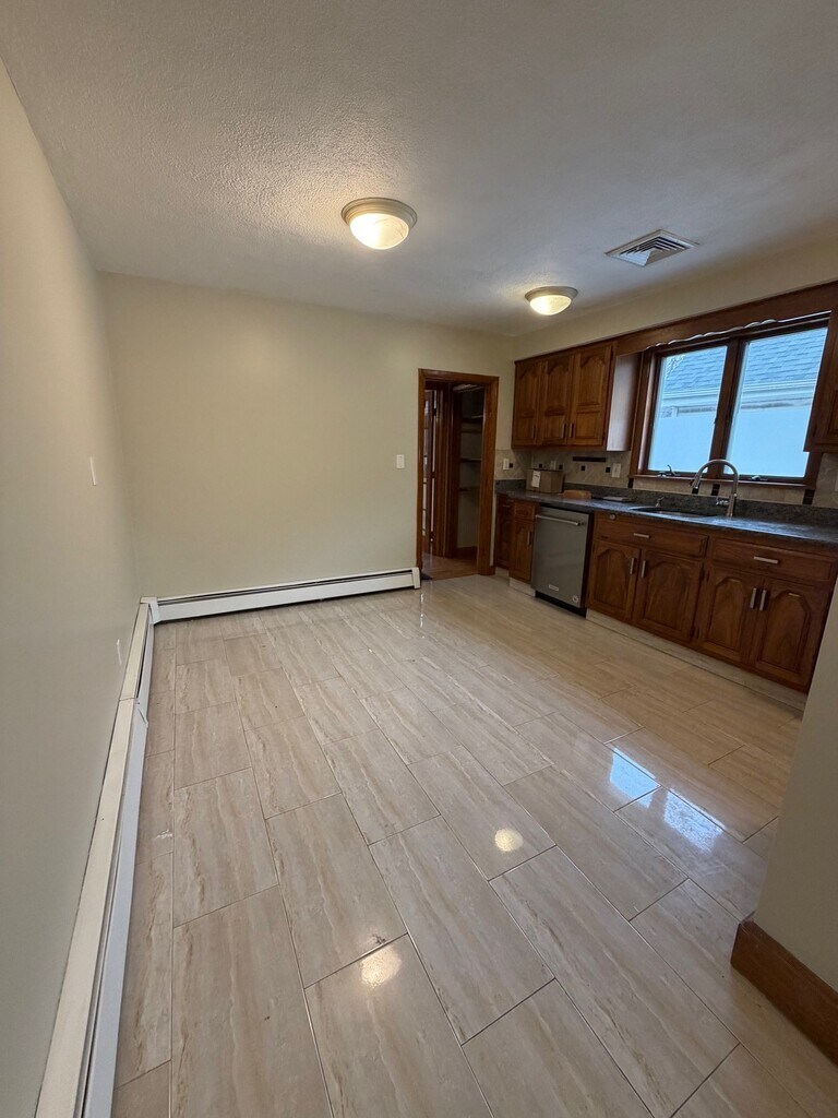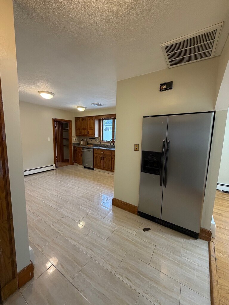 Sunny 2+BR/1BA 2nd floor apt in a 2 unit house E. Arlington. All Utilities Included. In unit washer/dryer, Central air + 1 off St. tandem shared Parking. Available Now for Move-in. A short walk 0.5 miles to the Alewife T Station-Red Line and Rt 2. Walkable to parks, bike paths, cafes, and grocery stores. The plus room 11 x 13 is ideal for a home office with a deep closet and includes the washer dryer. First bedroom 11 x 12 has an enormous big wall closet with sliding doors and full length mirrors and ceiling fan. Second bedroom, 11 x 11 has a tall IKEA corner closet with sliding doors. Kitchen offers stainless steel appliances, dishwasher disposal, and porcelain tiles. Living and dining room are open concept with hardwood floors and lg windows. Bathroom has a tub and porcelain floors. Shared backyard. Move-in costs first month and security deposit. Lease end 5/31/27