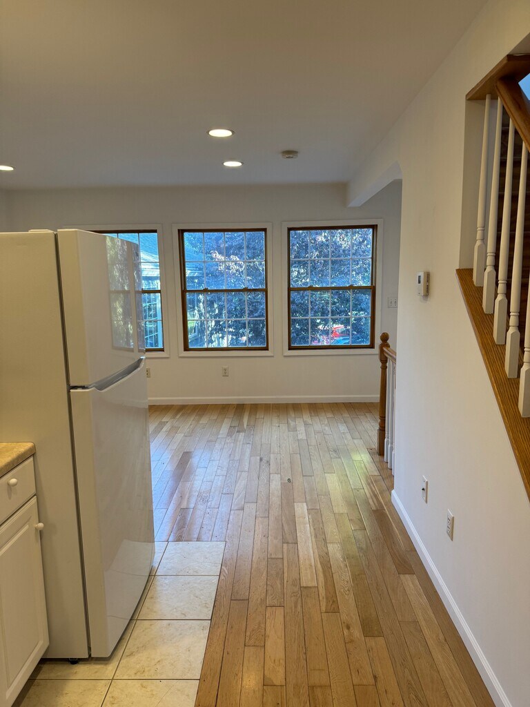 Experience the perfect blend of urban convenience and peaceful living in this unique, spacious 1-bedroom, 1.5-bath apartment. Tucked away on Montgomery Street, just behind the vibrant heart of Partition Street, this quiet, three-story townhouse offers an unparalleled sense of privacy and charm. Upon entry, you are greeted by a spacious living room, with the kitchen and dinette conveniently located on the next floor. The private top floor is dedicated entirely to the bedroom, creating a serene and secluded retreat. Located in a quaint and quiet complex, the apartment is in excellent condition and features modern amenities, including central cooling and heating. The property also offers off-street parking and shared laundry facilities on site for your convenience.