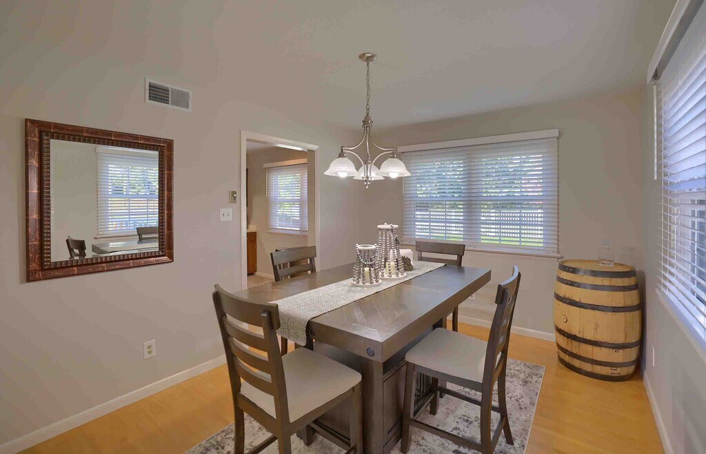 Classic split level home in a quiet neighborhood. Basement is partially finished with a private multifunctional room. First floor has a family room with a TV and gas fireplace. There is also a powder room and access to the garage and patio. Patio has a retractable motorized awning. Second floor has a living room with TV, dining room and kitchen. The third floor has 3 bedroom and 2 full baths. The backyard is fenced in and semi-private; there is a field and woods behind the property. There is a walking trail 3 houses away that leads to other neighborhoods and a public park. The entire interior has been repainted and it has new blinds/window treatments throughout. A new HVAC system was installed in August 2025.