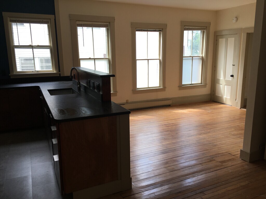 In easy walking distance to everything downtown, this two-floor apartment features an open floor-plan, lots of natural light, recently updated kitchen, 1.5 bathrooms, washer & dryer, off-street parking. Heat included.