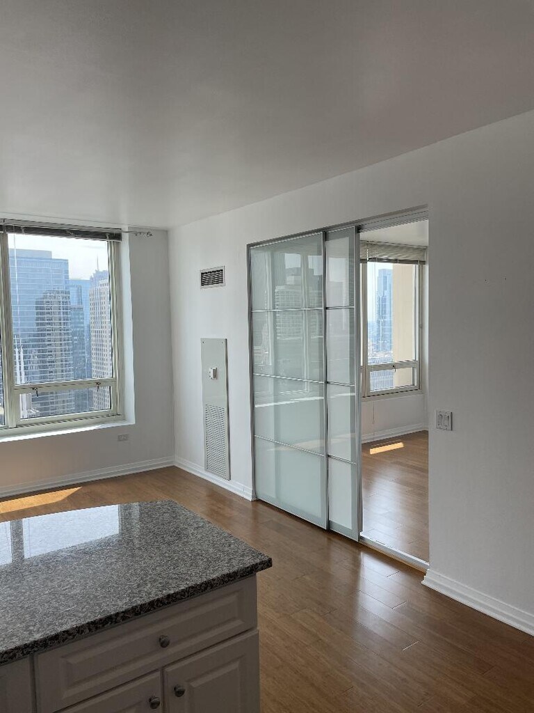 LIVE IN THE HEART of highly desirable River North in this Sunny South Facing Condo! New hardwood floors, Spectacular city view from 47th floor. Junior 1BR with granite entryway, Washer/Dryer in unit, 42" cabinets. Rent includes Heat, AC, Gas, Internet, Basic cable and Health club (fitness with new equipment, pool) and 24 hour doorman. FULL SERVICE HIGH-RISE WITH DOORMAN, POOL, SUNDECK, FULLY EQUIPPED FITNESS CENTER, PARTY ROOM FOR ENTERTAINING, CONFERENCE ROOM FOR WORKING, PACKAGE DELIVERY RIGHT TO YOUR DOOR, AND AN ON SITE DRY-CLEANERS. 3 GROCERY STORES ARE WITHIN 2 BLOCKS OF YOUR DOOR (WHOLE FOODS, TRADER JOE'S, JEWEL), WALK TO THE LOOP & MAG MILE Parking available in attached garage.