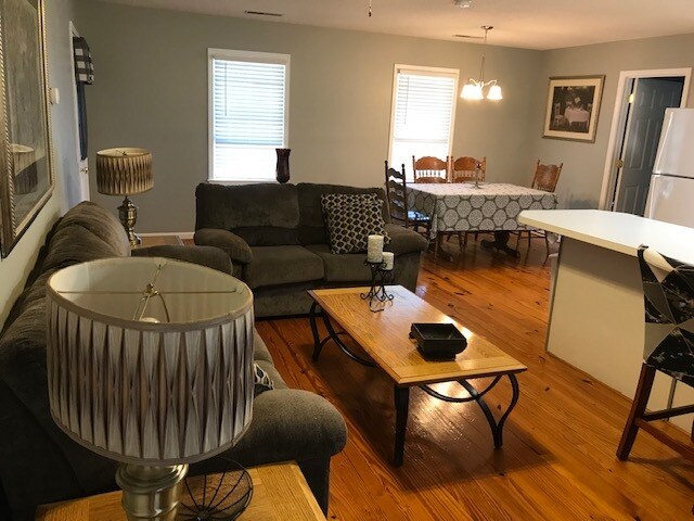 Large fully furnished two-bedroom mother-in-law house in nice, safe neighborhood. Wood floors in living room and kitchen, carpet in bed, and tile in the bathroom. Perfect for young couple or single female/male. Large backyard for gardening and woods for getting away. Access to hot tub and pool, with deck and BBQ. Must see!!! $96-98.00 a day, usually deployed Military. Fully furnished, pots, pans, dishes, silverware, coffee pot, blender, expresso, rice cooker, towels, TV's, cable, internet, everything you need on your deployment to Shaw AFB. Free garage parking Free Internet/WIFI Free cable (Spectrum) Free Gas, Electricity, and Water 10 minutes to SHAW AFB No cancelation fee