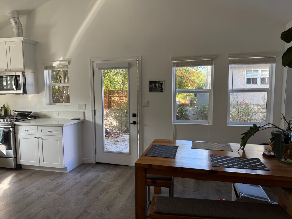 Pasadena Gem close to metro, bus and shopping (TJ's, Ralphs, and two big shopping centers within 1/2 mile.). This two bedroom, one bath home was built in 2023 with a beautiful kitchen, sit up bar and elegant granite counter tops. Many windows give this home a lightness along with vaulted ceilings in kitchen, LR and DR in an open concept. The bedrooms are along a hallway separating the living space. There are two storage spaces along the hall with a closet for stack washer and dryer. Ideal for two people looking for a home office and living in one, or a starter for a family expecting their first child! There is a dedicated yard for this unit. Rent is $3050. Deposit is $3050 plus credit report. Sorry, no pets allowed. OPEN HOUSE: DECEMBER 1st ONLY from 6-8pm. A decision will be made on the evening of the first for entry on the second of December. Only serious renters should apply. I'm out of town on the second hence the rush. Please walk down the path on the right of the garage all the way to the back; see you there!