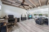 Renovated 3-bed, 2-bath home in Riverland Village. Features include two new central A/Cs (2023 & 2024), new roof (2024), updated electrical, Quartz countertops, stainless steel appliances, updated bathrooms, LVP floors, ceramic tile in master, and two closets in the master bedroom. Fully fenced yard, automated sprinkler system, aboveground pool, retractable awnings, screened-in patio with storage, washer/dryer, and a powered storage shed. Minutes to highways, boat ramp, beach, Hard Rock, FLL, and Port Everglades.