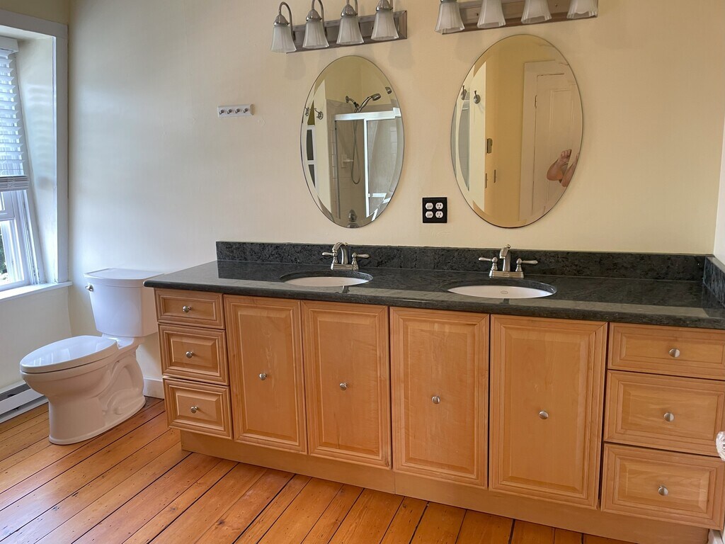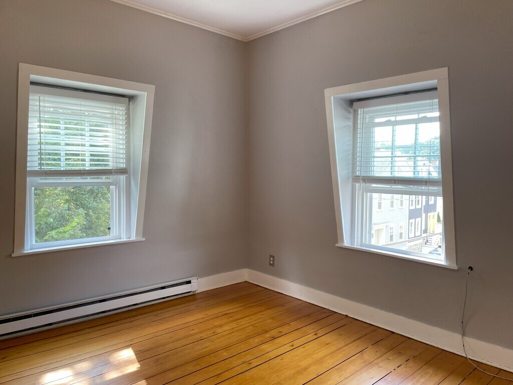 Large 2 bedroom, on third floor with wood floors, high ceilings, 1.5 bath, study/office, eat in kitchen, living room, yard, off street parking, laundry in basement, in downtown Newport. 1 block from Thames St, across street from Park/Library. Recently renovated with granite countertops, stainless steel appliances, new cabinets, granite island. Fenced in stone patio, $2600 per month for long term lease. Avail 01 March, 2025.
