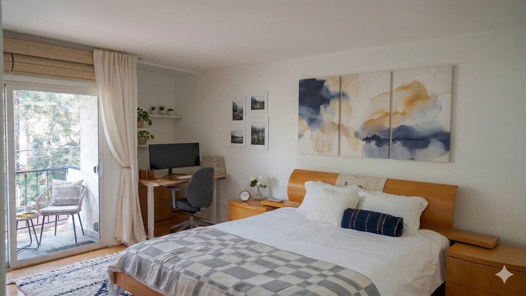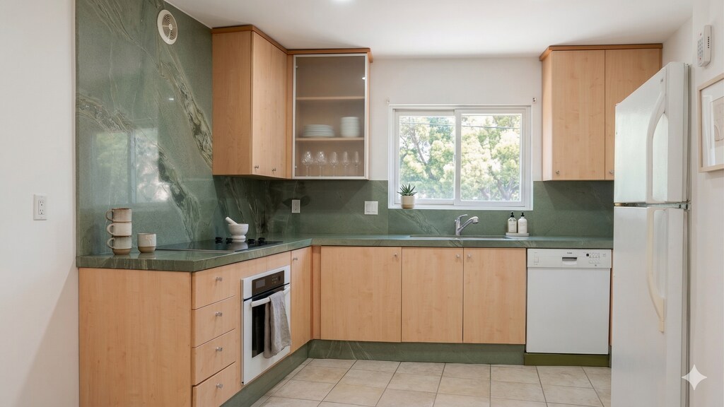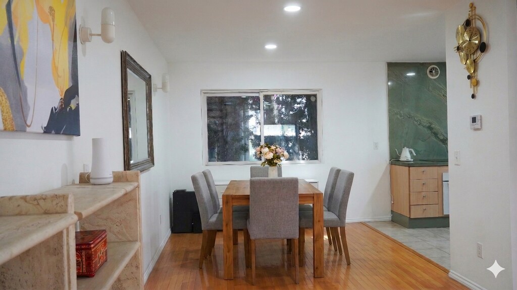 Rare find! This architectural gem located on one of the neighborhood's most iconic streets offers a sophisticated modern sanctuary in the heart of Los Feliz. Perfect for those seeking a premium mid term stay, this townhouse is available for 30+ day rentals. Enjoy a light filled 2 bedroom, 1.5 bathroom floor plan that has been thoughtfully curated with high end finishes and a boutique, private feel. Design Centric Interiors Meant to Host The Showstopper Kitchen: Anchored by breathtaking floor to ceiling real marble on the backsplash and matching countertops, this space is a photographer's dream. Designed with a focus on visual impact and catering, it serves as the ultimate backdrop for content creation or hosting stylish, catered gatherings. Sun Drenched Living to be Seen: Open concept living spaces designed for high visibility and effortless entertaining, featuring beautiful solid hardwood floors, recessed lighting, and a signature fireplace. The home is flooded with natural light, further expanded by two private balconies that offer fresh air and neighborhood views. Private Outdoor Retreat: In addition to the balconies, enjoy a secluded, moody patio enclosed by black cedar fencing and glowing string lights. It is your own private courtyard for al fresco dining or a quiet escape from the city. Work from Home Ready: Two spacious bedrooms including a primary with a built in desk and shelving system perfect for creative professionals. Enjoy a premium suite of entertainment with a new Roku TV and full access to Netflix, Max, and Peacock. Premier Location & Amenities Flexible Stays: Optimized for stays of 30 days or longer. Climate: Central A/C and heating for year round comfort. Convenience: In unit laundry and two dedicated parking spots included. Atmosphere: One of only five highly coveted boutique townhouses in a small scale building, offering significantly more privacy and neighborhood soul. Live Like a Local Experience true walkability. You are steps away from the very best of Los Feliz Village: Dining: Little Dom's, Messhall, and Alcove are your neighbors. Culture: Walk to Skylight Books, The Vista Theatre, and Los Feliz 3. Nature: Direct access to Griffith Park hiking trails, the Observatory, and the Greek Theatre.