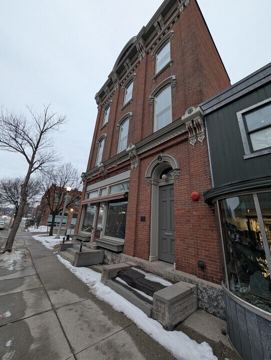 Build in 1868, the First National Bank Building was constructed by Luther Graves, a successful entreprenuer in Bennington. All brick construction, the first two floors sport 15' cielings, and the building towers over the surrounding cityscape. Hardwood floors, tin cielings, spiral staircases and ornate woodwork sprawl throughout this property which is located just steps from the four corners, oldcastle theatre and local restaurants.