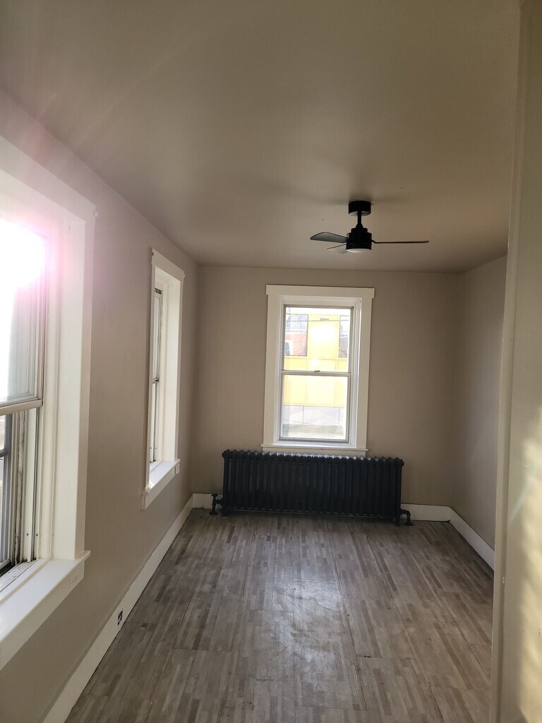 Fully renovated 3 bedroom townhouse. Gas heating and cooking. Fresh paint throughout. New bathroom, new kitchen with stainless steel appliances & granite countertop. Bedrooms have ceiling fans. Small backyard.