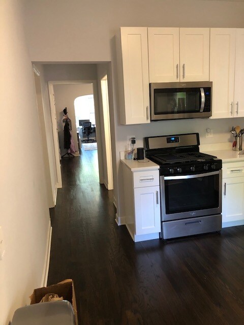 Newly renovated 3BR/1BA. Kitchen with 42" white Shaker cabinets, white quartz counter tops, and stainless steel appliances. Bathroom with 42" white quartz vanity, tub, and white tile. Full sized washer/dryer and central HVAC. Refinished floors. Freshly painted. HUGE rear deck. A+ location in Southport Corridor only blocks away from Brown line and Wrigley Field. Garage parking available for an additional fee.