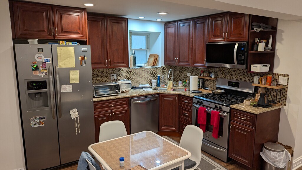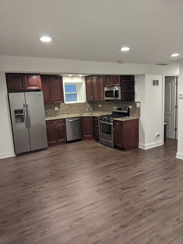 BASIC DESCRIPTION: 2-bedroom, 1-bathroom garden unit, approximately 900 sq. ft. LEASE LENGTH: 12-month lease RENT: $1,650 per month UTILITIES: Gas and electric not included (average of approximately $75 each per month) AVAILABLE AS SOON AS: June 21, 2026. APPLICATION REQUIREMENTS: $1,650 security deposit. Minimum credit score of 620. Applicants are required to complete a rental application and authorize a credit and background check. FEES: None (though the rental application has a minimal fee). No move-in fees or pet fees. PETS: Only cats and birds are allowed. AMENITIES and DETAILED DESCRIPTION: The free washer and dryer are conveniently located just outside the unit’s back door so it's almost like they’re in the unit. There is an updated kitchen with open living/dining space. Laminate floors throughout. The master bedroom has a very large walk-in closet sometimes used as a home office. Both bedrooms are large enough to fit a queen bed. The unit has central air conditioning and a gas furnace. Also, it is important to note that this building does NOT have a lead water line - a rarity in Chicago where approximately 85% of water service lines have lead! When you have guests over you can also use the backyard to entertain. All amenities are available for tenants, including the yard, table with six chairs, and grill. Free uncovered parking spot included for one car on the back parking pad adjacent to alley. When you have guests over there is typically ample street parking, which is free and does not require a permit. Friendly and fun neighborhood right on the border of Irving Park and Albany Park. The Brown line is .6 miles away, a Kimball bus stop is a mere 100 steps away, and it's a 6-minute drive to 90/94. For food, there are lots of great ethnic restaurants within walking distance, Aldi is about 1.25 miles away, and Cermak produce is very close for lots of great food. The owners (my wife and I) live nearby and are easy to reach and very responsive to issues that come up. We have no issue with spending money to resolve a problem in the unit. We just want people to be happy living here. There are two other apartments in the building, and all tenants are very nice.