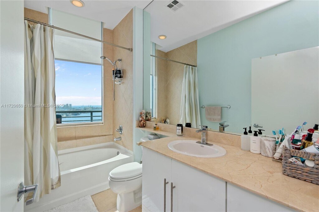 Gorgeous water view 2 bedrooms 2 bathroom condo in Brickell!! Breathtaking views of Biscayne Bay. porcelain tile throughout. brand new living room set, granite countertop, Large washer and dryer. Walk-in master closet. One Miami is conveniently located a short walk to Bayfront Park, Metro mover, Wholefoods and all other downtown/Brickell shops and restaurants. Guard-gated building with 24/7 front desk security. Gorgeous lobby and multiple pools, gym, and other amenities. Amazing! Note-Pools and jacuzzi are under remodeling CALL FOR MORE INFORMATION