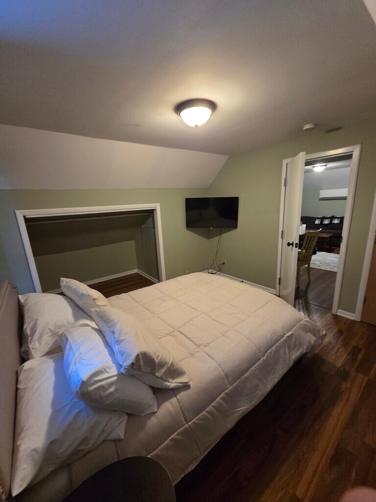 This welcoming duplex features two comfortable bedrooms and one well-appointed bathroom, making it ideal for anyone looking for a cozy, convenient place to call home. Each bedroom features a queen-size bed, creating a relaxing retreat after a long day. The bathroom includes a single vanity, a tub, and a walk-in shower for added comfort. The fully equipped kitchen makes meal prep easy, with all the essentials for cooking at home. A dining table for six lets you gather for meals or game nights, and the living room is designed for relaxing with a sofa, coffee table, and smart TV ready for streaming your favorite shows. There is also a third room that's not legally a bedroom but can be used as an extra sleeping or lounging space. Additionally, two pull-out sofas provide even more flexibility for guests or larger groups. You'll have your own washer and dryer in the unit, making laundry days effortless. Step outside to enjoy a small deck that's perfect for your morning coffee or evening unwind. Driveway parking keeps things simple, and with the bus line just a short walk away, getting around town couldn't be easier. This is the kind of place that feels comfortable the moment you walk in warm, practical, and ready to welcome you home. Space This inviting duplex combines comfort, space, and flexibility, making it ideal for small groups or families. With two cozy bedrooms, a third bonus room, and two pull-out sofas, it easily accommodates up to five people. The fully equipped kitchen, bright dining area, and relaxing living room create a welcoming atmosphere for gathering and unwinding. Every detail is designed to make your stay simple, comfortable, and ideally suited for spending quality time together. Neighborhood overview This duplex is in a peaceful, well-connected part of Shakopee, ideal for everyday living. The neighborhood blends quiet residential streets with convenient access to shops, restaurants, and local parks. You can walk to the nearby bus stop, making it easy to get around without a car. It's the kind of area where neighbors wave hello, weekend walks feel relaxing, and everything you need is just a few minutes away.