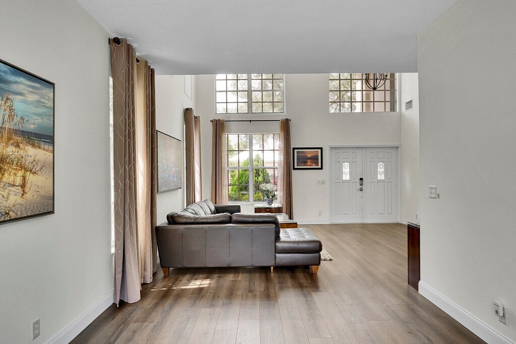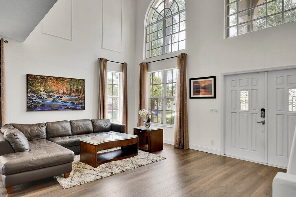 Spacious 4BR, 2.5BA home with 2,226 sq ft. & a 2 car garage with a Tesla charging station! Located in a gated community near shopping & highways. Enjoy peace of mind with a 2021 roof, new 5 ton A/C, and complete accordion shutters. Interior features stunning new luxury waterproof vinyl flooring throughout. New stainless appliances, granite countertops in kitchen, newer impact garage door & impact sliders going to the patio. Half bath downstairs was updated with a floating vanity & LED mirror. Relax in the screened patio-marble floors on the back patio & front patio. Pick fresh fruit from your own fenched backyard with many fruit trees. Perfect blend of comfort, convenience, and security—ideal for modern living! Jonathan & Giannina Babilonia Babilonia Team Realty One Group Innovation 14590 South Military Trail Suite E8 Delray Beach,FL 33484 Luxury estate, Property management,Renovation advisor,Residential & Rentals. Courtesy of Preferred Properties Int'l Rea