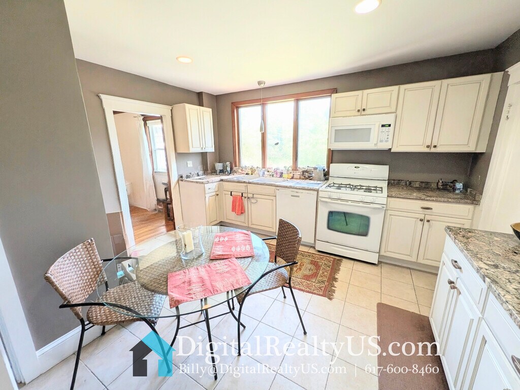 Charming and spacious 3-bedroom, 2-bathroom apartment available for rent in a desirable Watertown location. This unit offers a blend of classic character and modern convenience, featuring beautiful hardwood floors and detailed wood trim throughout. The living room is bright and inviting, centered around a cozy brick fireplace and offering plenty of space for relaxation and entertaining. The adjacent dining room features built-in cabinetry and wainscoting, perfect for formal dinners or casual meals. The eat-in kitchen is equipped with white cabinetry, granite countertops, and a gas stove, providing a functional and pleasant cooking space. This apartment includes three well-sized bedrooms, one of which features an en-suite bathroom for added privacy and convenience. Both bathrooms are tiled and feature full bathtubs. For your convenience, a washer and dryer are located within the unit. Step outside to enjoy the well-maintained yard, complete with a lovely patio area, perfect for outdoor gatherings and relaxation. The property also includes two dedicated off-street parking spaces. Additional storage is available in the basement. This unit is conveniently located on Orchard St, providing easy access to all that Watertown has to offer. Tenants cover all utilities. Contact us today to schedule a showing!