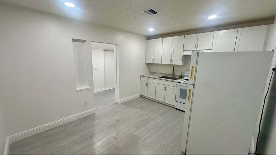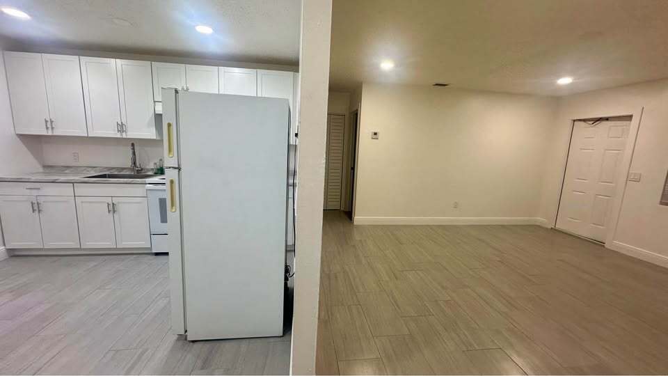Every detail of this unit has been upgraded for modern comfort and efficiency. Step inside to find brand-new flooring throughout and a bright, open layout illuminated by energy-saving LED lighting. The kitchen features brand-new cabinets, offering plenty of storage space. The bathroom has also been completely remodeled with modern finishes. Beyond the aesthetics, this home is built for peace of mind and low utility bills. It features a brand-new AC unit, new insulation, a new water heater, and high-end impact windows and doors, keeping the unit cool, quiet, and secure. Enjoy your own outdoor space with a private, fenced patio perfect for relaxing. The unit also includes the convenience of two dedicated parking spaces. Key Features: Total Renovation: New floors, new kitchen cabinets, and a new bathroom. Energy Efficient: New AC, new insulation, new water heater, and LED lighting throughout (expect lower electric bills!). Safety & Quiet: Fitted with impact-resistant windows and doors. Outdoor Space: Private fenced patio. Parking: 2 dedicated parking spaces included.
