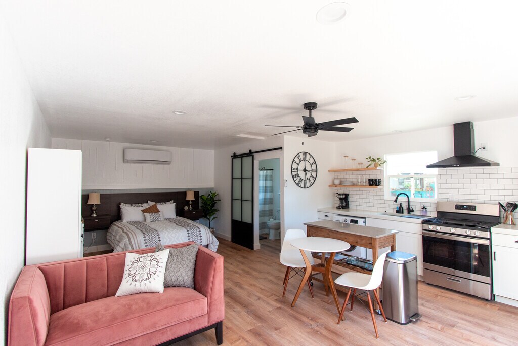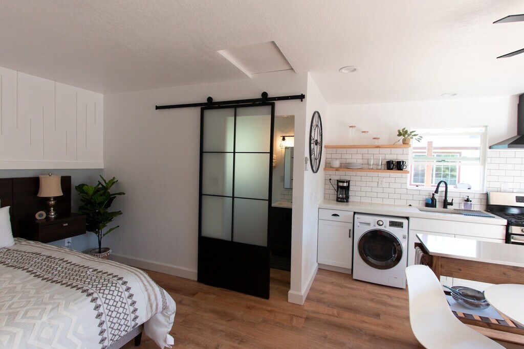 Enjoy this newly remodeled studio located in a quiet and safe neighborhood. Just around the corner from a local grocery store, Starbucks, bank, CVS, and some of Redding's best restaurants. Just minutes to the nearest Hospitals and the Redding Downtown nightlife. This open and airy studio features a private driveway and entrance through a gated patio, brand new Euro washer/dryer, appliances, and furniture.