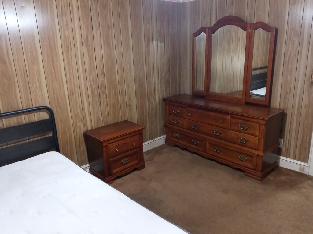 I have available a house share located in Manchester NH. This is a single occupancy (1 person) rental available immediately. You would be housemates with myself and one other mature male. I am the home owner. You would have a furnished bedroom, which is 11'2" by 13'4" in size. The bedroom has wall shelving, a ceiling fan with a ceiling light, a window with a blackout shade and blackout curtains, and a closet. Also included is a sturdy queen sized bed with mattress and sheets, a large clothes dresser with a large mirror attached, a night stand, and a warm space heater with remote. The bedroom has 5 electrical outlets. Clothes hangers are available for free if needed. You will have use of the bathroom, kitchen and all kitchen supplies (including all pots and pans, cooking utensils, plates and bowls, microwave, blender, cooking oven, etc), clothes washer and clothes dryer, the yard, and extra storage if needed in the full basement. I am seeking a mature, respectful, drug and alcohol free single occupancy adult. No pets allowed. You will be expected to make significant contributions to the cleaning, care, and maintenance of the common areas. The property has off street parking, a backyard, is surrounded by a small woodlot on 2 sides, and is in a good, safe, quiet neighborhood. This location is near everything you would need. Meaning, within 3 miles of large grocery stores, the mall of NH, the Manchester airport, doctors offices, and close to the highway for easy travel. The bedroom is in the larger house on the left. All utilities and household supplies (electricity, water & sewer, heat, dish soap, toilet paper, cleaning supplies) and Wifi are included. The house share is $1,200 per month, with $1,200 security deposit required.