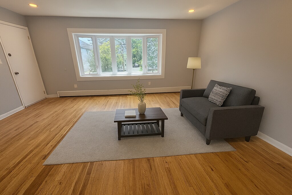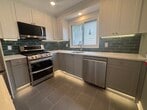 Completely renovated 3-bedroom, 1-bath second-floor apartment featuring hardwood floors throughout, an open floor plan, and a modern kitchen with quartz countertops and stainless steel appliances. Includes driveway parking for 2 cars, laundry in basement, and shared use of the yard. Move-in ready with stylish finishes updates throughout. Walkable to public transportation. Owner will pay 1/2 of the broker fee to move in.