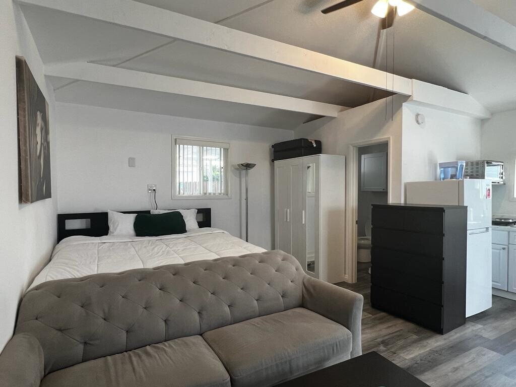 A very spacious stufio with vaulted ceilings and 1 bath, stand alone Bungalow in the heart of Rose Ave. Huge private gated patio and yard area. Electronic key pad entry. Property is completely gated and secure! Open for short term leasing aswell, at a higher price. This stand alone Venice Bungalow with private gated patio, is located only 5 blocks from the beach. The property is fully secured with electronic key pad entry. Only 3 units in this amazing property. All of which are completely detached from each other and all have their own gated and private areas. This is truly a gem! Newly remodeled. Open to short term rentals can be happily negotiated. Hurry! Won't last! Just 3 short blocks to Main St. and 5 blocks to the beach and the famous Venice Boardwalk! At this price it won't last! Pets welcome!