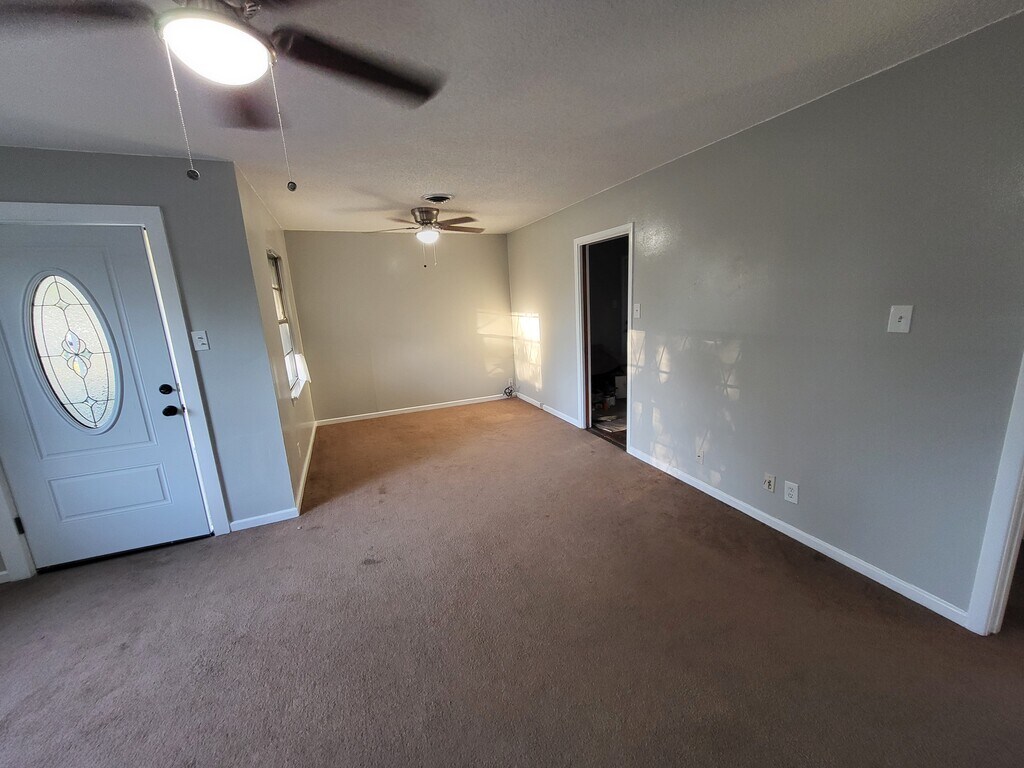 Come see this beautiful 3/1 home on a quiet street close to the middle school and 1.5 miles from the high school. This cozy home is heavily shaded, with a heavily shaded back yard as well. It comes with garage and remodeled bedrooms, bathroom, and living room area. All are equipped with ceiling fans and a high efficiency AC unit. It is newly carpeted and has new STAINLESS-STEEL microwave and flat top stove. Its backyard is fully fenced. Available for rent immediately move in ready