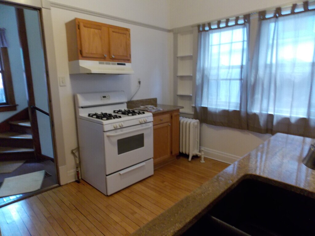 Excellent shape 1,485 sq ft, all hardwood floors refinished, 140 sq ft two bedrooms with ceiling fans. August 1st lease. Remodeled Bathroom. Garage, laundry, remodeled kitchen with granite countertops and walk in pantry with outlet / light. Plenty of storage with 6 closets plus storage closet in basement. Lead lateral water supply removed. Over 60,000 Milwaukee homes have lead water supply lines. Well maintained building. Updated high efficiency boiler and water heater. Bright and spacious living room with natural fireplace. Large dining room with stained glass / leaded buffet. Across the street from Klotche center and UW Milwaukee. Near Downer shopping and restaurant district. Walk to beaches and parks. Conveniently located to Lake Drive, I-43, MSOE and downtown Milwaukee. No carpeting in unit, hardwood floors throughout. Partially furnished if interested. No smoking / no vaping. No pets. Lease start August 1. for 12 month lease