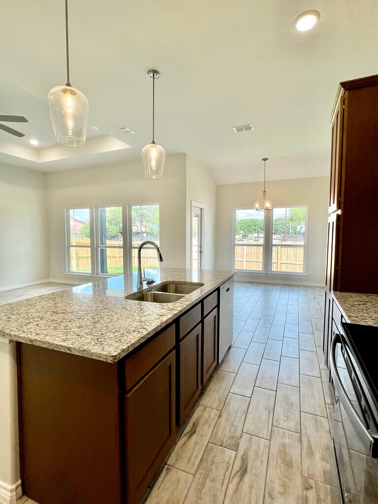Nestled in a quiet neighborhood, this home is in a prime location next to excellent schools, parks, shopping, and restaurants. The house boasts new stainless steel appliances, granite countertops, high ceilings, and large windows that flood the space with natural light. Tile flooring runs throughout the home, except for the spacious bedrooms, providing a perfect blend of style and comfort. The primary bedroom features an en suite with a large walk-in shower and closet, offering a private retreat within this beautiful residence.