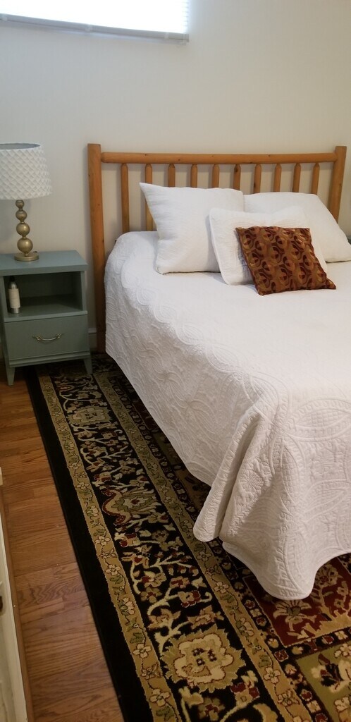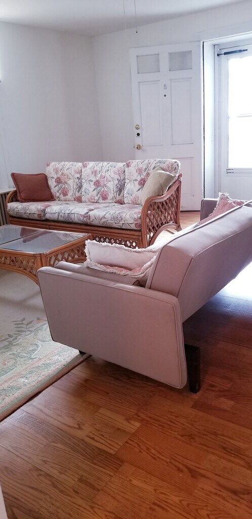 Gorgeous, large, fully furnished two bedroom apartment. Amazing location in beautiful well-established neighborhood. Just two short walking blocks to the Old Town Winchester pedestrian mall with shops, restaurants, cafes and entertainment. Located inside an 1840s hstoric house, this two bedroom apartment features original hardwood floors, high ceilings, crown molding, large windows, built in bookcase and beautiful mantels over non-functioning fireplaces. Heated by radiators and cooled by ac window units and ceiling fans. FULLY FURNISHED with very comfortable beds, kitchenware, dishes, cookware, bedding and linens. PERFECT for a traveling professional, someone just moving to the area who or someone in limbo between home renovations or selling and buying a home. Large living and dining room with two bedrooms. Very comfortable Queen-sized bed in larger bedroom and Full-sized memory foam bed in smaller bedroom with television. Workspace is in livingroom with a long desk and high speed fiber internet. No pets. No smoking.