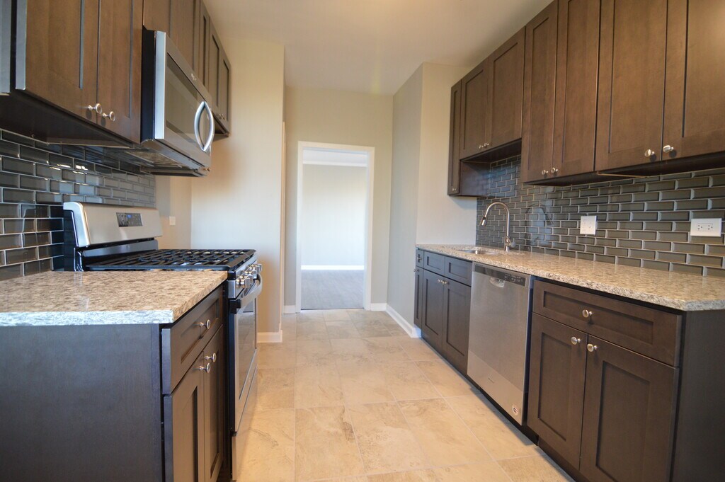 Contemporary apartment! 3 bedroom, 1 bathroom apartment has it all in the perfect location! Fabulous, modern kitchen, stainless steel appliances, granite counter tops, beautiful bathroom, custom hardwood floor throughout and carpet in bedrooms. Quiet block, next to shops and police station convenient to public transportation. Available now. Section 8 Applications Welcome.