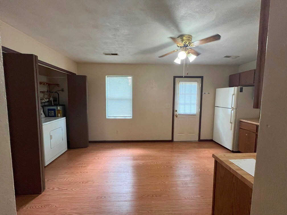 Amazing large 1 bedroom, 1 bathroom apartment in convenient central-west location in Springfield, IL. Close to downtown, shopping, restaurants, major roads and Medical complex facilities. Amenities included: Central Air, Central Heat, Back Balcony, Recently updated all Updated Kitchen, Updated Bathroom, Fresh Neutral Paint and New Flooring, Ceiling Fans, Washer & Dryer in unit. Utilities included: Water and Trash. Tenant pays only Electric. 1 Year lease. Section 8 Welcome. Date Available: October24, 2025. $895/month rent. $895 security deposit required. New flooring put in after the photos were taken. Contact us for questions and / or schedule a showing.