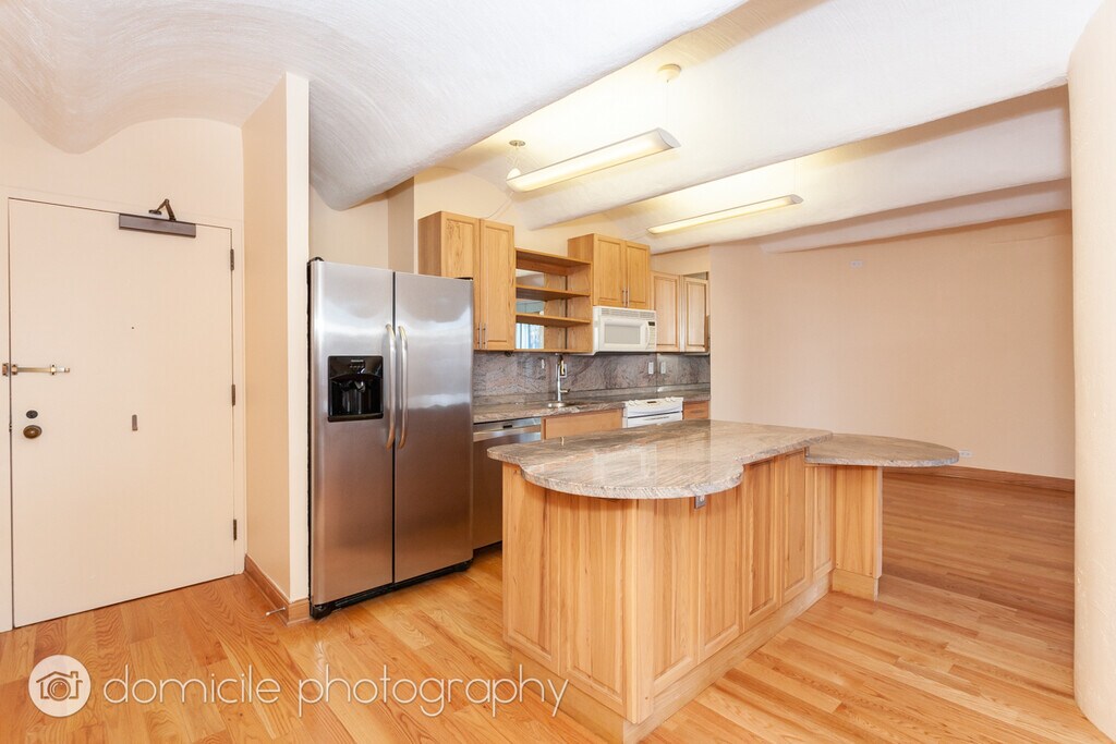 AVAILABLE March 10th: Come see this spacious 2bed/2bath urban loft with concrete sculpted ceilings in Harry Weese's "Ice House" on the Chicago River in the Fulton River District, available now! This west-facing unit with an all-weather sheltered balcony has urban city/sunset views and features a huge open living space with a full dining area, modern kitchen with island, updated appliances, and hardwood floors throughout. Updated baths with HEATED floors, a whirlpool tub, and a huge linen closet. Tons of storage space throughout, plus additional storage in the basement. In-unit washer/dryer as well as laundry facility on site. Walk to the Metra & El trains, Loop, Michigan Ave., River North/Fulton Market nightlife, and endless restaurants to choose from. Building has doorperson, riverside deck, and ground access to the riverwalk. Pets friendly with some restrictions. This is a must see! Property Management firm requires mandatory Resident Benefits Package for an additional $40.00 per month; includes renters insurance, positive credit reporting for on-time rental payments, identity fraud protection, and more. Call Stephen to schedule a tour today! Ref # 12 558028 Stephen John Suominen Broker Compass Listing Courtesy of Fulton Grace Realty