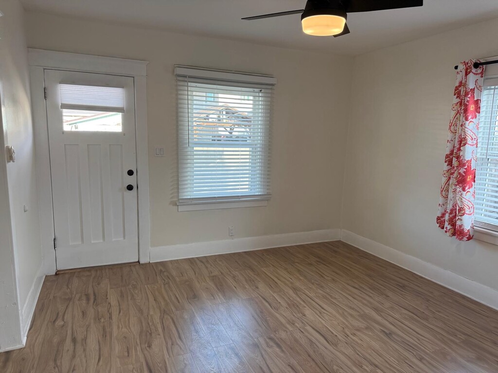 Small single behind a single family residence in San Pedro CA. This unit is walking distance to the waterfront.and downtown San Pedro. This unit is being listed for the first time in 9 years. It has recently received new hardwood floors, tile, paint, blinds, vanity and a new remote controlled ceiling fan. This unit is perfect for 1 person due to its size. There is a full bathroom and full size kitchen.No pets and no smoking on the property. Minimum credit score of 650 required. Tours available to qualified applicants. If the listing is up the unit is available.