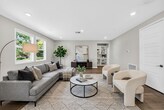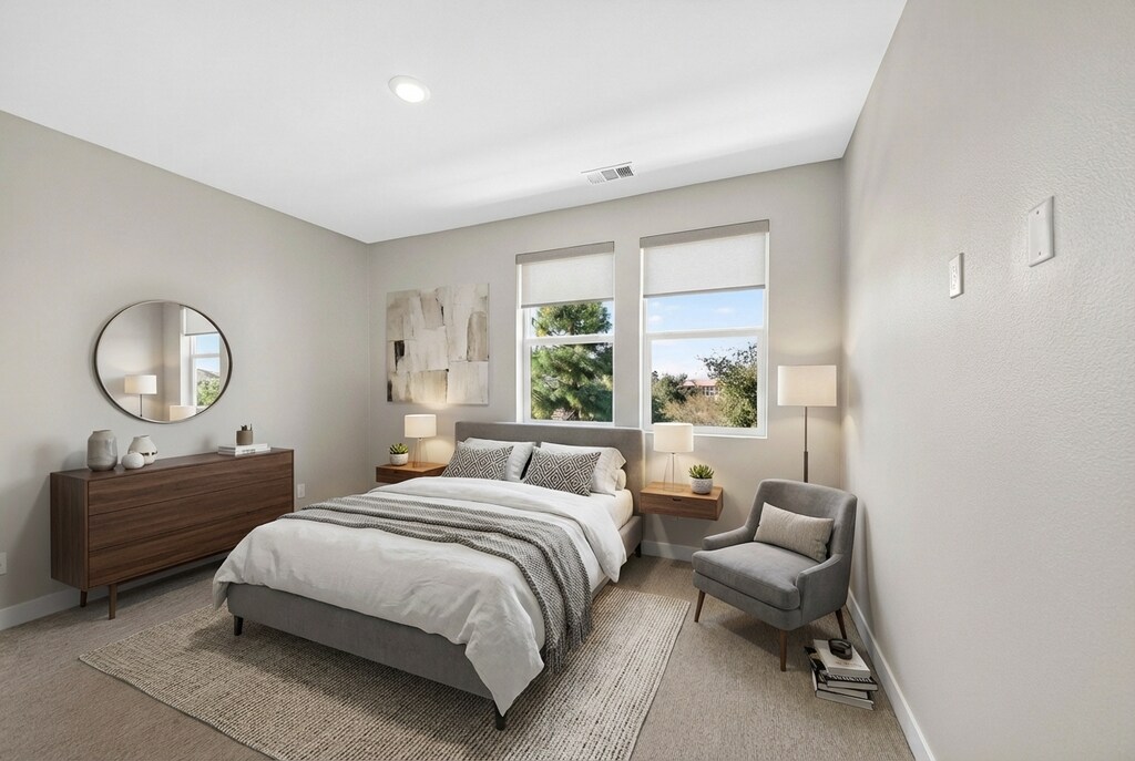 Elegant and light-filled corner-lot two-story residence offering a refined modern lifestyle with thoughtfully designed open-concept living spaces. This beautifully appointed home features wide-plank flooring, recessed lighting throughout, and a seamless indoor-outdoor flow. The gourmet kitchen is the centerpiece of the home, showcasing an oversized quartz island, abundant custom cabinetry, stainless steel appliances, gas range with designer hood, and double built-in ovens—perfect for both everyday living and upscale entertaining. Expansive sliding glass doors open to a private tiled patio, ideal for outdoor dining and relaxation. The home offers spacious and well-proportioned bedrooms, complemented by spa-inspired bathrooms with dual vanities, elegant finishes, and a glass-enclosed shower. A dedicated laundry room with built-in cabinetry adds convenience and functionality. Additional highlights include a two-car attached garage with epoxy flooring, tankless water heater, and meticulous attention to detail throughout. The property is in excellent, near-new condition and is move-in ready. Located in a desirable and well-planned neighborhood, this home offers comfort, style, and sophistication—an exceptional opportunity for those seeking a high-quality luxury lease.